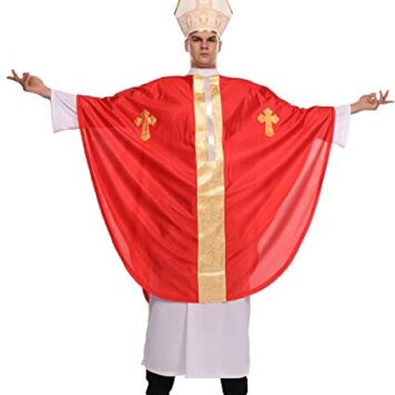 Maxim Party Supplies Adult Pope Halloween Costume Biblical Catholic Cardinal Bishop Outfit for Men Includes White Robe, Red Papal Poncho, Hat