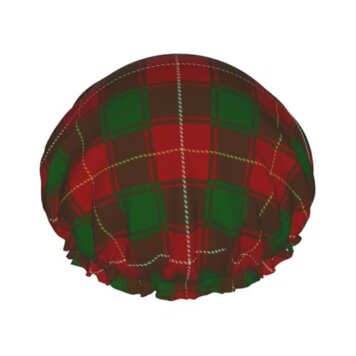 SolaraPulse Shower Cap for Women, Scottish Clan MacDuffee Tartan Double Layer Reusable Bathing Cap with Elastic Band for Hair Care and Protection
