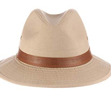 Dorfman Pacific Men’s One-Piece Canvas Faux Leather-Trim Safari Hat