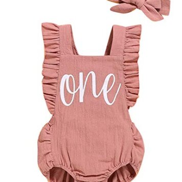 Shalofer Baby Girl First Birthday Outfit 1st Birthday Bodysuit with Headband