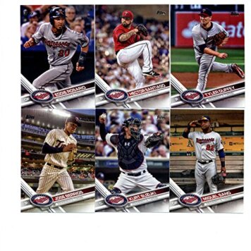 2017 Topps Series 1 & 2 Minnesota Twins Team Set of 23 Cards: Jose Berrios(#8), Kurt Suzuki(#27), Miguel Sano(#126), Eddie Rosario(#201), Byron Buxton(#227), Minnesota Twins(#304), Tyler Duffey(#305), Robbie Grossman(#313), Hector Santiago(#336), Phil Hughes(#379), Joe Mauer(#404), Max Kepler(#405), Eduardo Escobar(#407), Danny Santana(#453), Ryan Vogelsong(#491), Brian Dozier(#543), Jason Castro(#554), Ryan Pressly(#568), TRIPLET OF TWINS(#590), Glen Perkins(#606), plus more