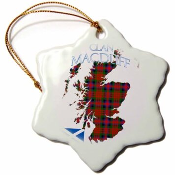 Ornament – Outline of Scotland with The Macduff Clan Family Tartan. Creative Studios Scottish Tartans
