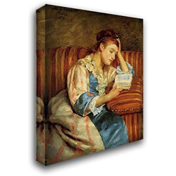Mrs.Duffee Seated On A Striped Sofa, Reading 20×24 Gallery Wrapped Stretched Canvas Art by Mary Cassatt