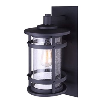 Canarm Duffy 1-Light Outdoor Wall Lantern, Black with Seeded Glass, Durable Wet-Rated Outdoor Downlight for Porch and Patio