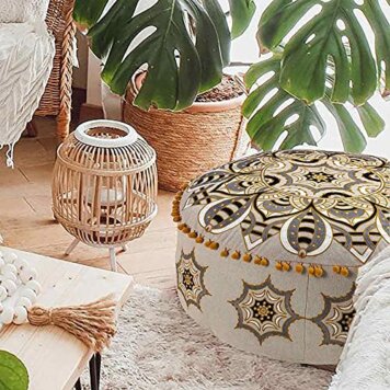 Mandala Life ART Bohemian Pouf Ottoman –Stuffed – Luxury, Artisan Room Décor Pouffe for Meditation, Yoga, and Boho Chic Seating Area Stool Floor Pillow