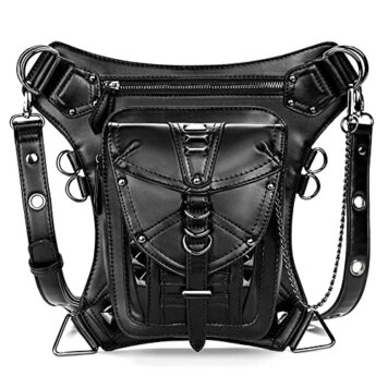 Steampunk Crossbody Shoulder Bag Messenger Gothic Waist Fanny Pack Chain Drop Leg Hip Holster Belt Purse Pouch