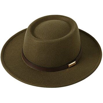 Lanzom Women Vintage Wide Brim Warm Wool Fedora Hat Belt Panama Hat Felt Jazz Hat