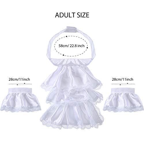 Proper size for adult: the lace jabot collar is 24 x 24 cm/ 9.5 x 9.5 inch, the neck band is approx. 58 cm/ 22.8 inch and the lace cuff is approx. 28 x 10.5 cm/ 11 x 4.1 inch