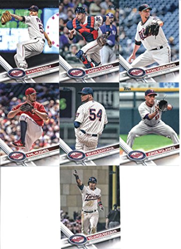 2017 Topps Series 1 & 2 Minnesota Twins Team Set of 23 Cards which includes: Jose Berrios(#8), Kurt Suzuki(#27), Miguel Sano(#126), Eddie Rosario(#201), Byron Buxton(#227), Minnesota Twins(#304), Tyler Duffey(#305), Robbie Grossman(#313), Hector Santiago(
