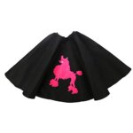The Poodle Skirt is a beautiful hadmade. Felt skirt and plush poodle with rhinestone eye and pink bow headband.One size fits most. Elastic waistband stretches from 20″ to 38″ Skirt is 19″ long.