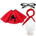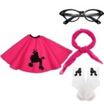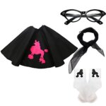 50s Girls Costume Accessory Set – Poodle Skirt, Chiffon Scarf, Cat Eye Glasses,Bobby Socks
