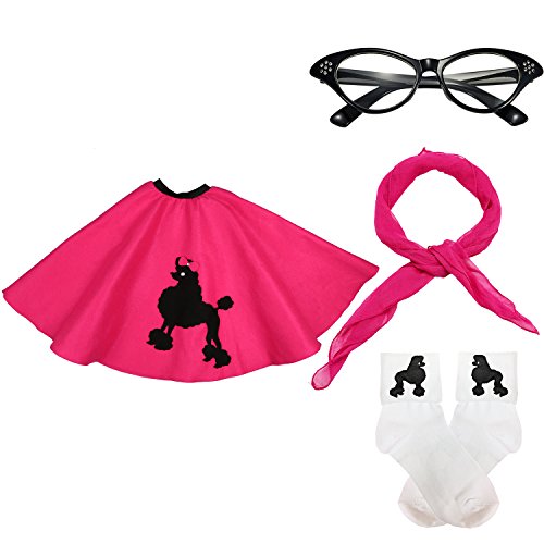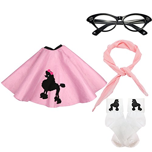 50s Girls Costume Accessory Set – Poodle Skirt, Chiffon Scarf, Cat Eye Glasses,Bobby Socks
