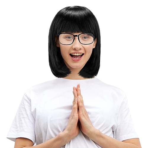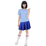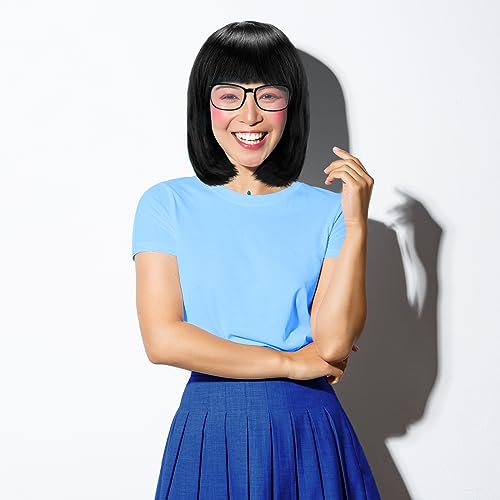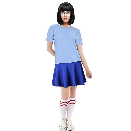 Reliable Material: the bob wig with bangs is made of high temperature fiber, smooth and soft, the frame of black glasses is made of PC material, lightweight but sturdy; And the blue shirt women and skater skirt are made of cotton, socks are made of polyester cotton, soft, lightweight and stretchy, comfortable to wear