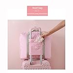 Travel tote Dimension: 17. 7”(L) x 13. 7″(H) x 7″(W), lightweight Weekender bag. This Travel Weekender bag with trolley sleeve is also specifically served as small carry on duffle for air travel, proper size for most airlines