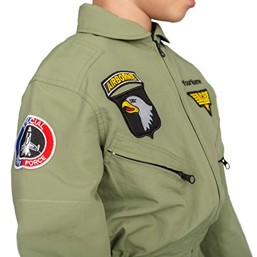Zip up pilot jumpsuit with 6 pockets, and an adjustable hat perfect for halloween or cosplay