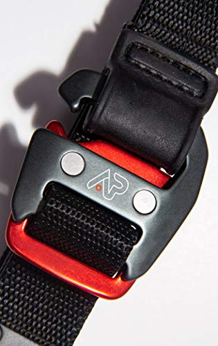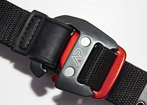 QUICK-RELEASE ALUMINUM BUCKLE BELT: Our belt is made with an Aluminum Pacman buckle. Creating a low profile and making the belt easy to use.
