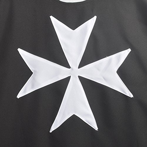 Medieval Tunic,Sleeveless Loose Outer Coat, White Maltese Cross sewed in front