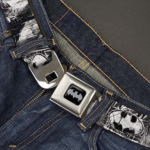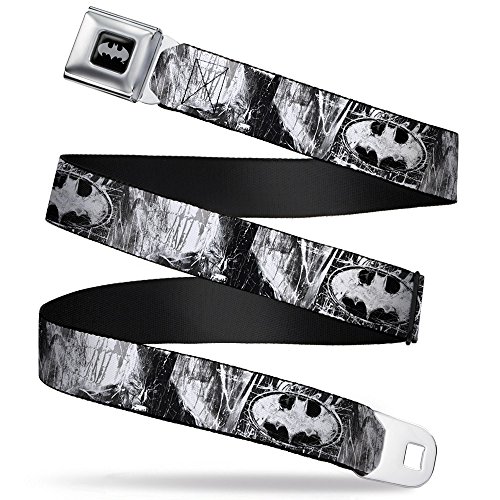 Buckle-Down Men’s Seatbelt Belt Kids, Batman face/Bat Shield Sketch White/Black, 1.0″ Wide-20-36 Inches