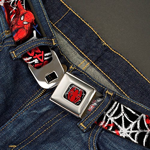 Buckle-Down Seatbelt Belt – SPIDER-MAN/3-Poses/Spider Web Sketch Black/White/Red – 1.0″ Wide – 20-36 Inches in Length