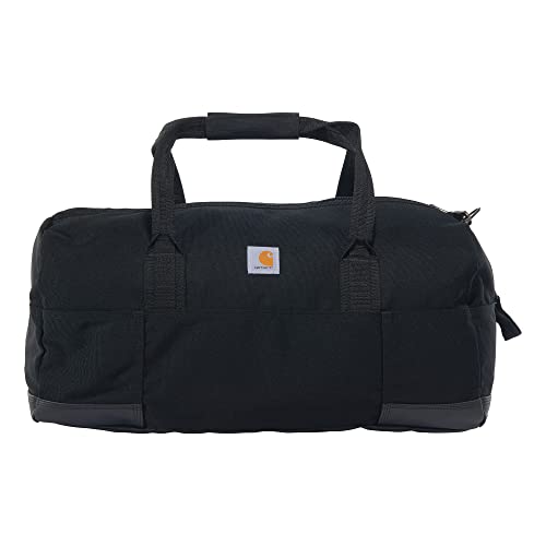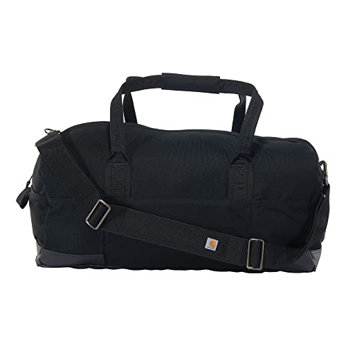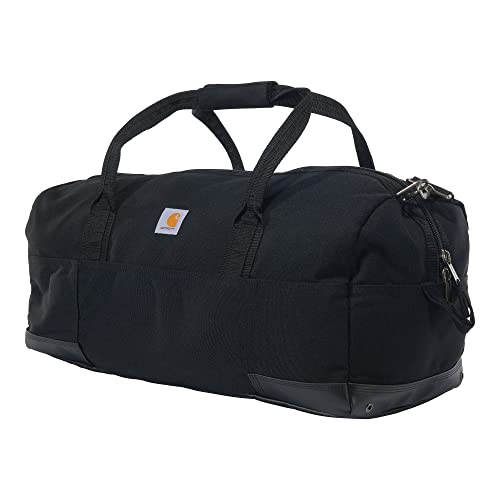 Removable, adjustable shoulder strap with pad; YKK zippers, metal hardware, comfort-grip haul handles, triple needle stitching, Carhartt logo patch