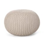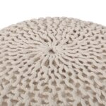 Enjoy this cotton knitted round pouf in any room of your home. Perfect for putting your feet up or using it as a small extra Seat when company is over. Easy to store in a corner or by the bed when not in use, This pouf not only looks cute but is functional too.