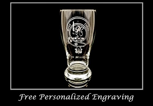 Clan MacDuff Blazon: A demi-lion rampant gules holding in the dexter paw a broadsword proper hilted and pommelled Or Clan MacDuff Motto: Deus juvat, “God assists” This specialty pint glass is engraved with the Clan MacDuff Crest and the words “Clan MacDuff ” Below in Old English Font. The name MacDuff can be traced back to the 11th Century as the earls of Fife. Clan comes from the Gaelic word “clann” which is translated to “children,” used to identify familial groups giving a common sense of generational connection. In Scotland the Clan system that is, Scottish Heraldry and Coats of Arms are regulated to this day by Lord Lyon who manages the Scottish Public Registers of Arms and Genealogies. *We can create any Coat of Arms or Clan Crest, please message us with your request! The engraving will not fade and the glass is dishwasher friendly. Please contact us if you would like The Coat of Arms of a different family name, we would be happy to work with you in creating it FREE PERSONALIZED ENGRAVING: We offer free personalized lettering on ALL of our glassware! There is no limit on lettering but we ask that you please consider what will fit with the design. If you would like to personalize your order, just send a message with your purchase and please state the following: 1.) What you would like engraved with spelling, punctuation and capitalization as you would like them. 2.) Where you would like the glass engraved; 1.Above the design, 2.Below the design, or 3.Opposite the design. (Please refer to photo above). Dimensions : Height : 7 ” Width : 3.25 ” Volume :19 oz. *Free Personalized Engraving *We will replace any glass damaged during shipping promptly and free of charge