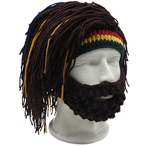 Creative Barbarian Knit Beard Hat Funny Knit Cap Wig Beanie Hats Beard Facemask