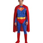 Includes muscle chest jumpsuit w/attached boot tops, belt & cape.