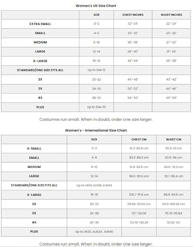 Note: costume sizing is different than apparel sizing, review the Delicious size chart and measure before selecting size