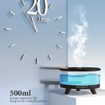 500ML Diffuser, Ideal for Large Room:The covering area reaches up to 480 ft², which can use in a large room.Enjoy up to 20 hours Fragrance. The three-time setting for option: 1/3/6H timer.
