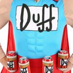 Soft-sculpted muscle chest has printed Duff logo