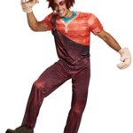 This posting includes: Jumpsuit with muscle chest and shoulders, pair of gloves, wig, and faux eyebrows as featured