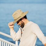 MEN’S SAFARI HAT – A 3” brim, mesh sidewall, and leather chin cord provide the look and comfort you need in sun, shade, and more