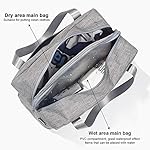 Dry Wet Separated Design: Two separate upper compartments are designed for keeping dry and wet clothes separate when swimming or doing gym exercise. The wet pocket is made of translucent PVC material, it is spacious to keep sweaty clothes after exercise.