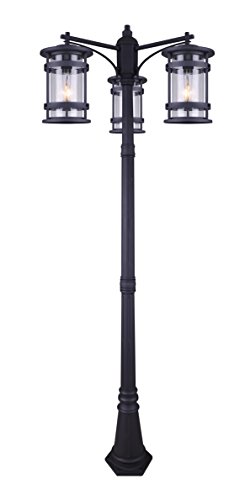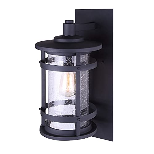 Elegant Design: Features a black metal finish with seeded glass panels that cast a diffuse light, perfect for creating a warm, inviting outdoor environment.