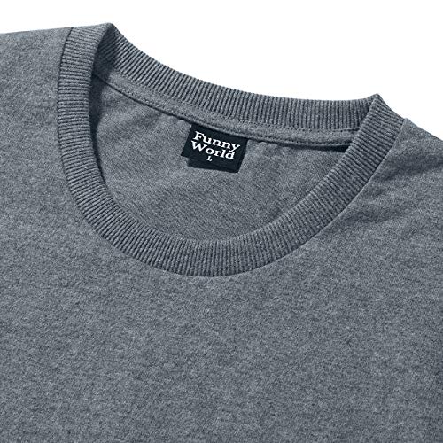 Funny World Men’s Heavyweight Cotton T-Shirts with Pocket, X-Large, Heather Grey