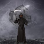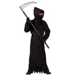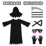 [Super Value Pack for Halloween Dress-up] – Grim Reaper Costume Contains Deluxe Reaper Robe, Scary Faceless Hood, Black Belt, a Pair of Reaper Gloves, and Glowing Red Glasses. Moreover,35.5 Inches Grim Reaper Scythe Included.