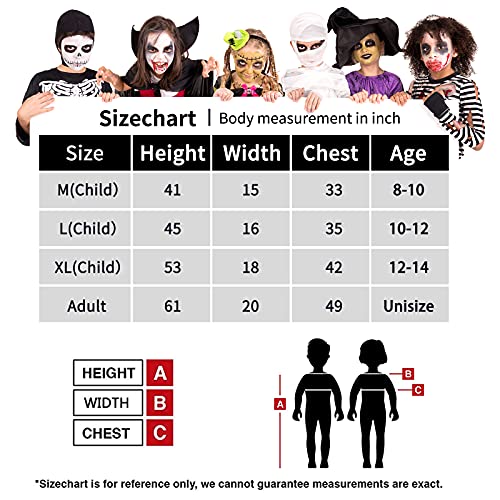 [Size Info] – Unisize(Adult): Chest 49″in / Shoulder 20″in / Length 61″in. Note: Please Check the Size Info Carefully Before Order.See the Sizes in the Pic for Reference.