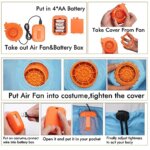 【Requires 4 x AA Batteries or Portable Source】 You can insert batteries or mobile power to operate, Include 1 x Costume ,1 x Fan,4 x AA batteries (NOT INCLUDE) required, so you need to purchase 4 x AA batteries yourself, It must be 4 AA batteries or it will not be powerful enough to fully inflate the costume.