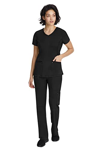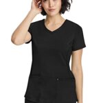 Modern Design With Maximum Durability: Our 2245 Juliet top gives you the look you want with the durability you need. Featuring a contemporary fit with a stylish knit V-shaped neckline, the ribbon, grommets, and stitching details on the pockets will keep up with all your demands. Body length measurement (based on size small): 27”