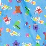 Featuring Squirrel Club favourites Duggee, Betty, Norrie, Enid, Roly, Happy, and Tag in a colourful print on the top with contrasting blue sleeves and green elasticated cuffs.