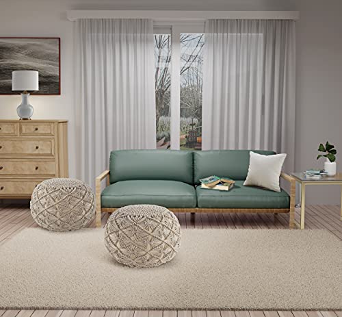 CASUAL POUF OTTOMAN: Whether your style is boho chic, Moroccan inspired or casual-cool, this Macrame Pouf is sure to please. Similar to a cross between a bean bag and traditional ottoman, this pouf acts as a stylish footrest or casual tabletop.