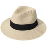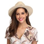 Lanzom Women Wide Brim Straw Panama Roll up Hat Fedora Beach Sun Hat UPF50+