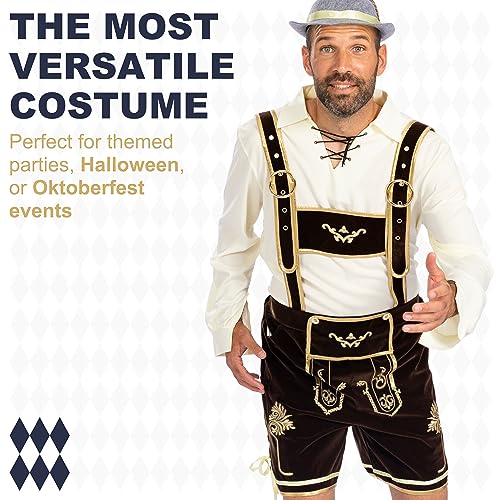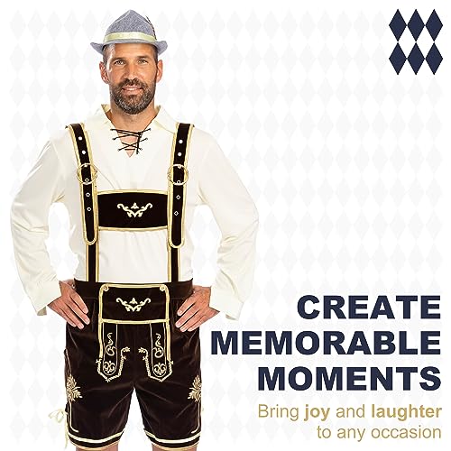 🍺 ICONIC OKTOBERFEST LOOK: Channel the essence of the world-famous Oktoberfest with our costume, featuring classic brown lederhosen with suspenders, a crisp white shirt, knee socks, and a Bavarian felt hat, capturing the quintessential Oktoberfest style.