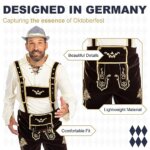 🍺 COMPLETE OKTOBERFEST ENSEMBLE: Our costume set includes all the essential elements for a complete Oktoberfest look, including lederhosen with attached suspenders, a white shirt, knee socks, and a Bavarian hat, so you can easily create a cohesive and stylish outfit.