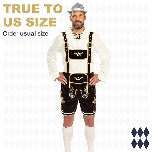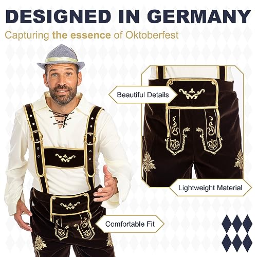 🍺 COMPLETE COSTUME SET: Our package includes everything you need to create an authentic Oktoberfest ensemble. From the lederhosen with attached suspenders to the shirt, knee socks, and Bavarian hat, our costume set leaves no detail overlooked.