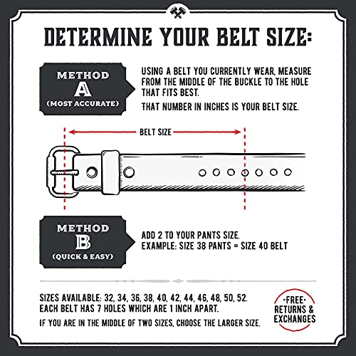 Handmade with care in the USA – Your full grain leather belt has been carefully handcrafted, right here in the USA. Small batches allow our skilled craftsmen to go slow, work with care, and ensure quality in every detail.