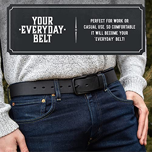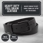 Heavy Duty Full Grain Leather – Made from a single piece of black, full grain leather, your new belt looks great with jeans, khakis, slacks, and more. Our leather is the finest quality available, and will patina and only look better with time.