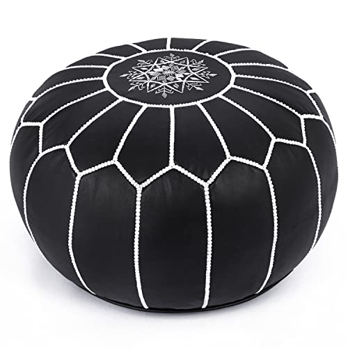 Handcrafted by Artisans in Marrakesh – Made from 100% genuine soft leather, this round leather pouf ottoman features exquisitely detailed, hand-stitched embroidery with a unique design down to the finest details.