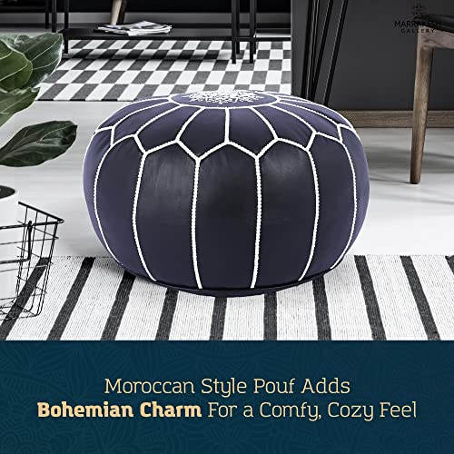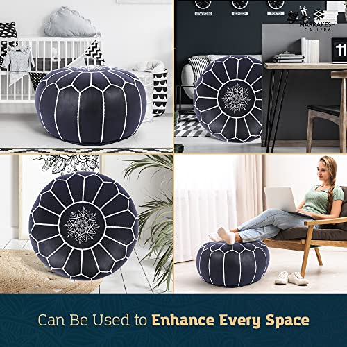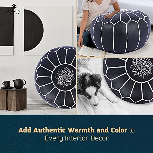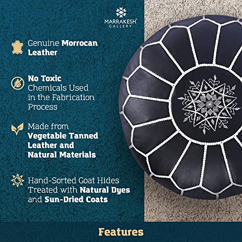 Marrakesh Gallery Genuine Leather Round Pouf – Moroccan Ottoman Footstool, Footrest, Bean Bag, Floor Chair – Boho Decor – Bohemian Living Room, Bedroom, Kids Room, Gift & Wedding